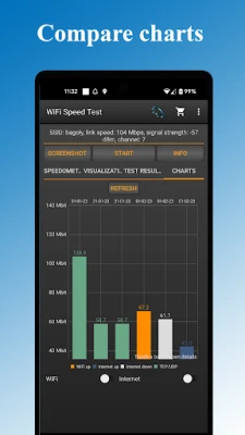 ✓ Save the past results of Wifi speed test automatically, including download and upload speed, ping, signal strength, network name, IP address